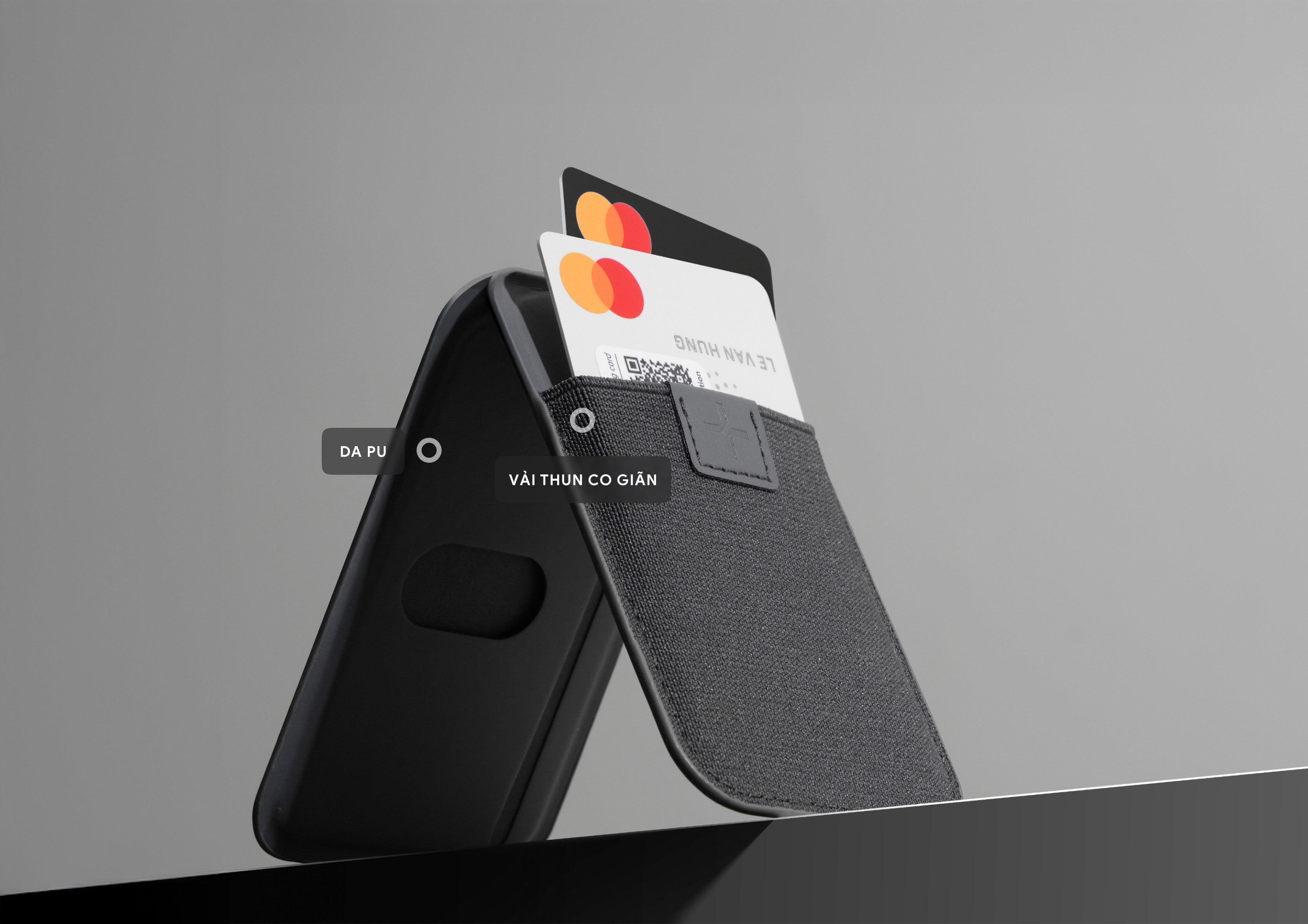 - Integrates as a phone case, storing cards, cash, photos, etc.
