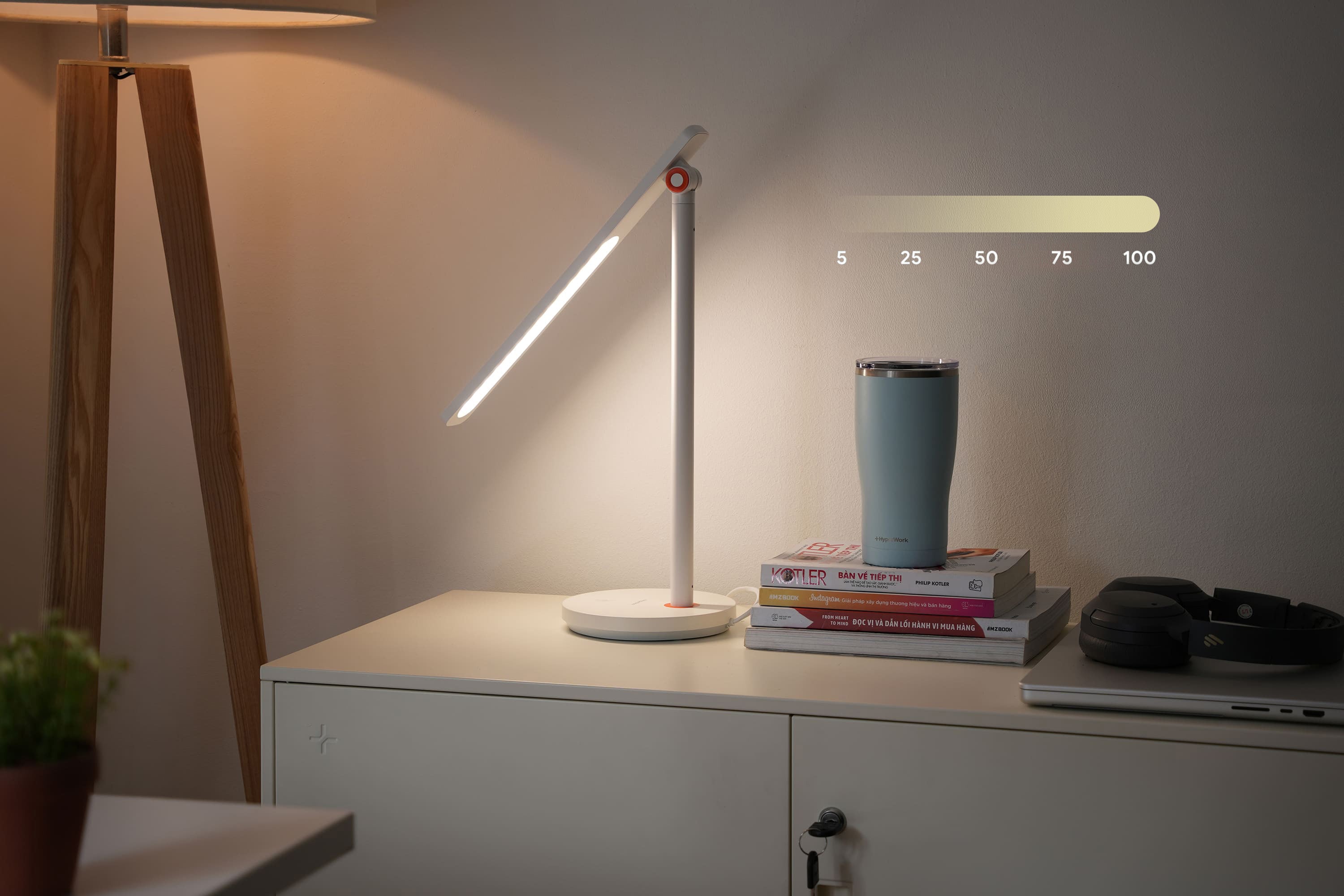 Thiết kế tối giản với thân đèn thanh mảnh, hài hòa trong mọi không gian làm việc. Kích thước nhỏ gọn, tiết kiệm diện tích, tối ưu cho cả bàn học lẫn bàn làm việc.