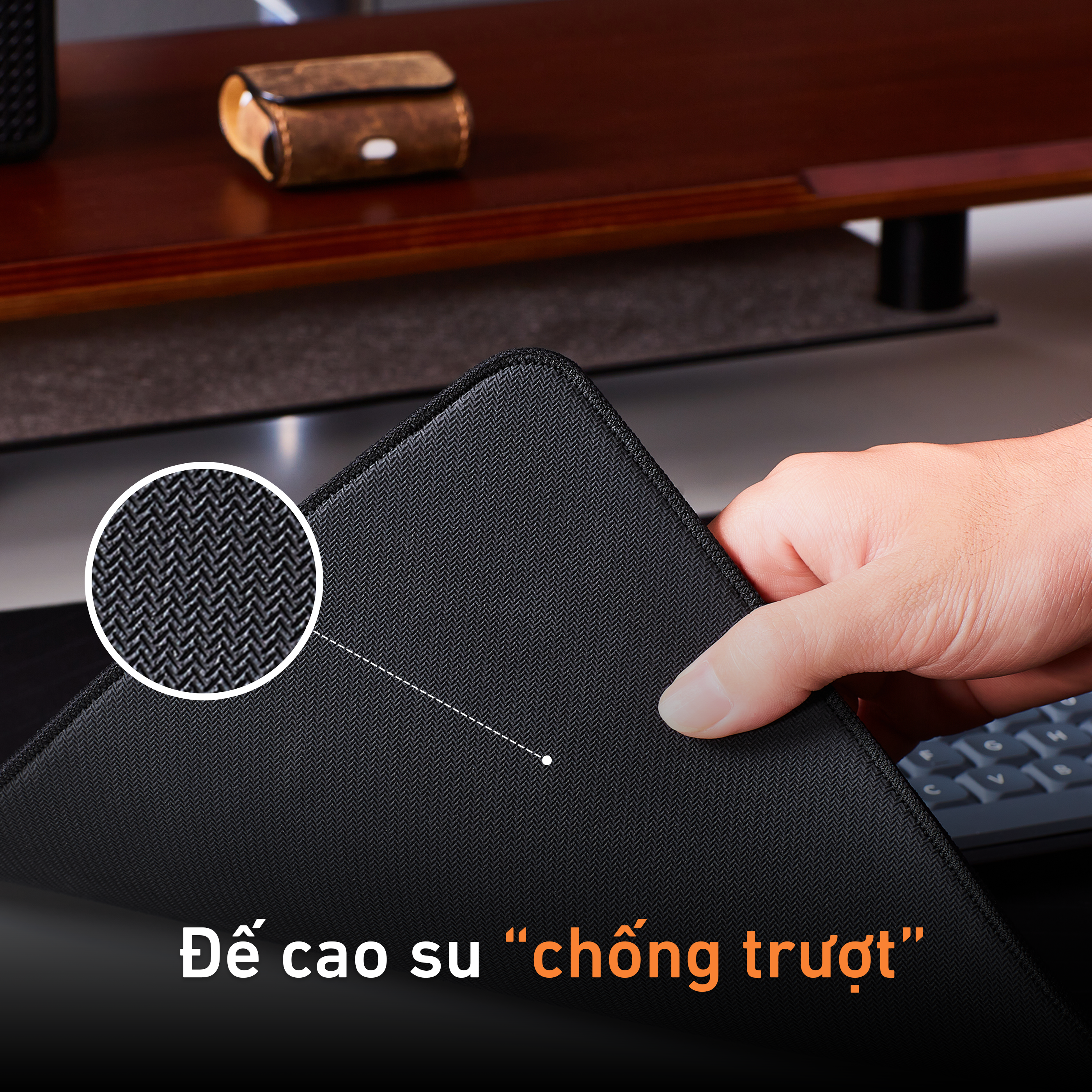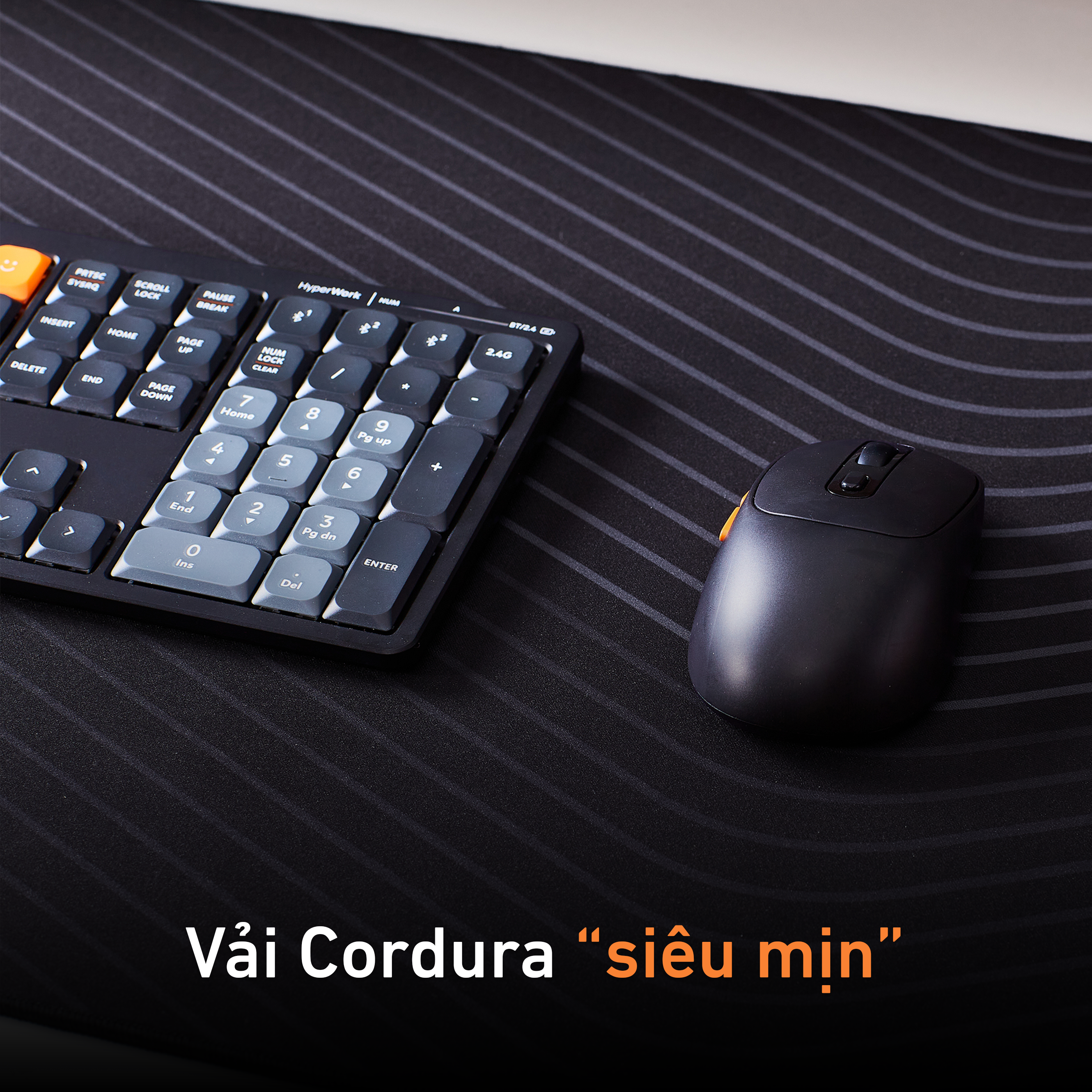 - Pad chuột chất lượng cao với 3 lớp: đế cao su chống trượt, lớp vải Cordura siêu mịn, lớp phủ chống nước