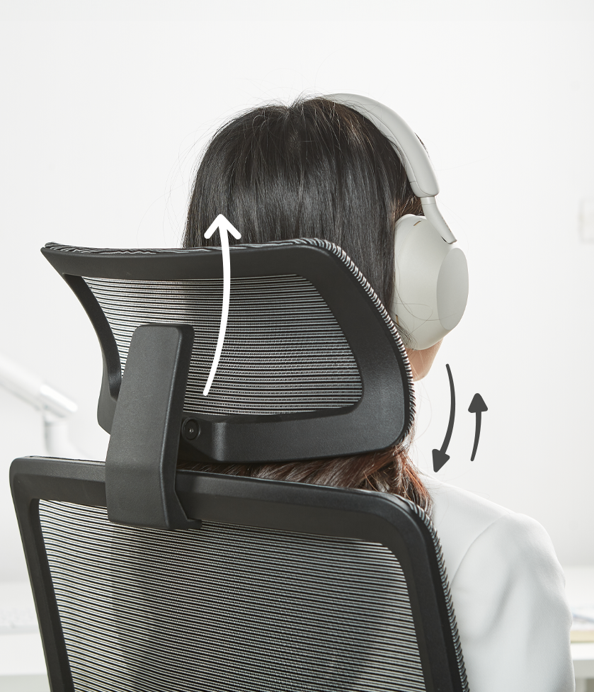 Chiều cao của tựa đầu có thể điều chỉnh lên xuống, Góc tựa đầu cũng có thể được điều chỉnh bằng cách xoay các bộ phận trên giá đỡ tựa đầu.