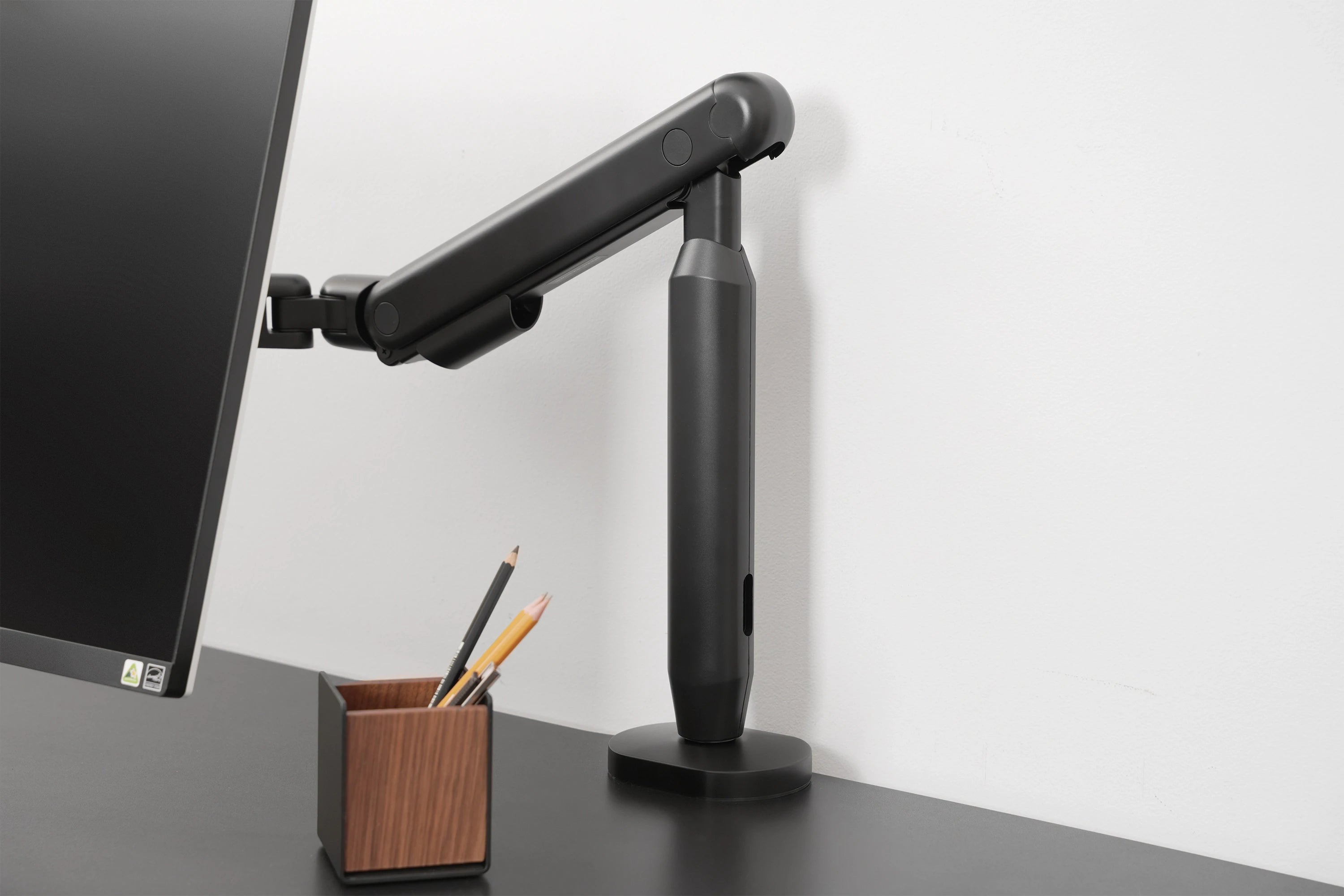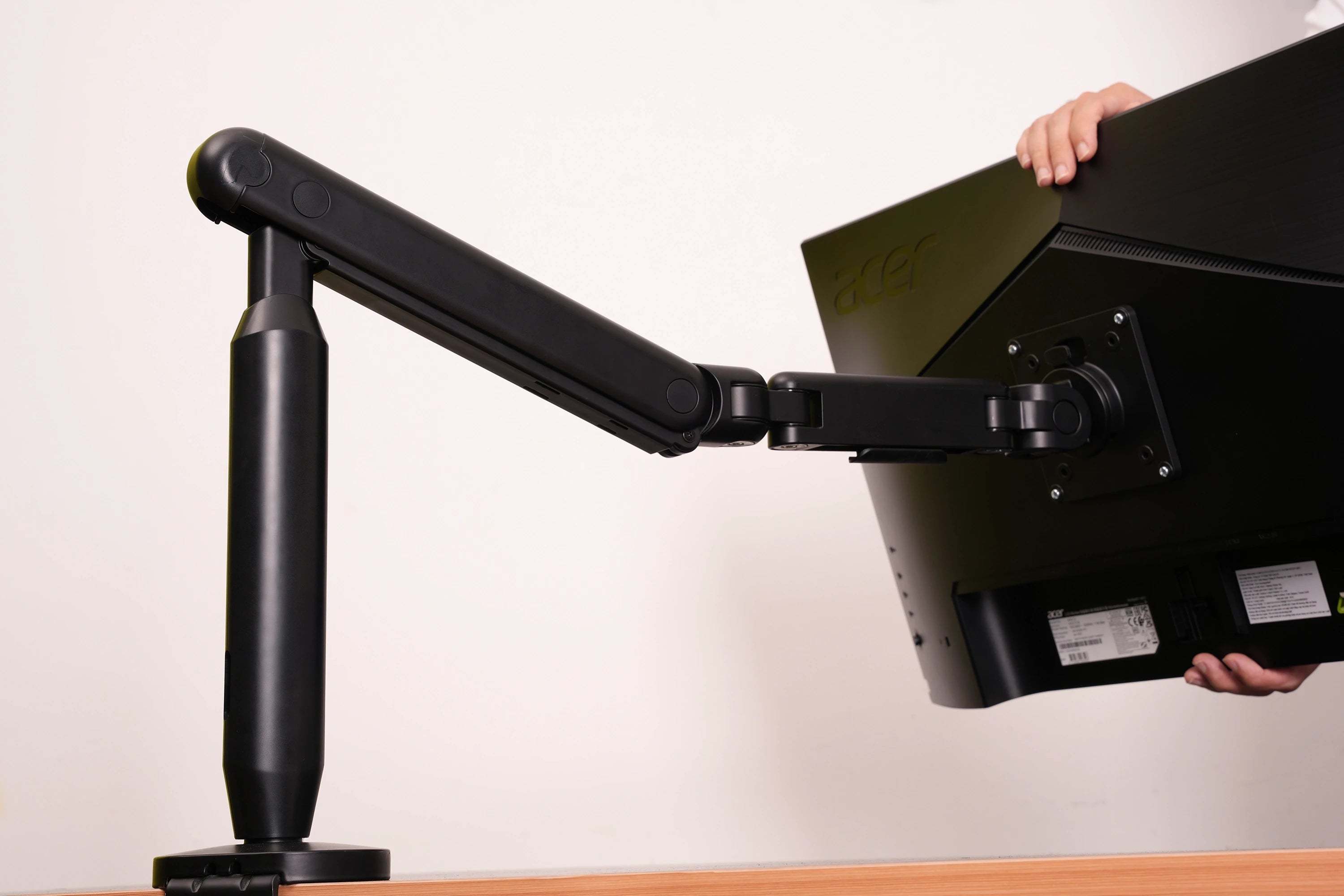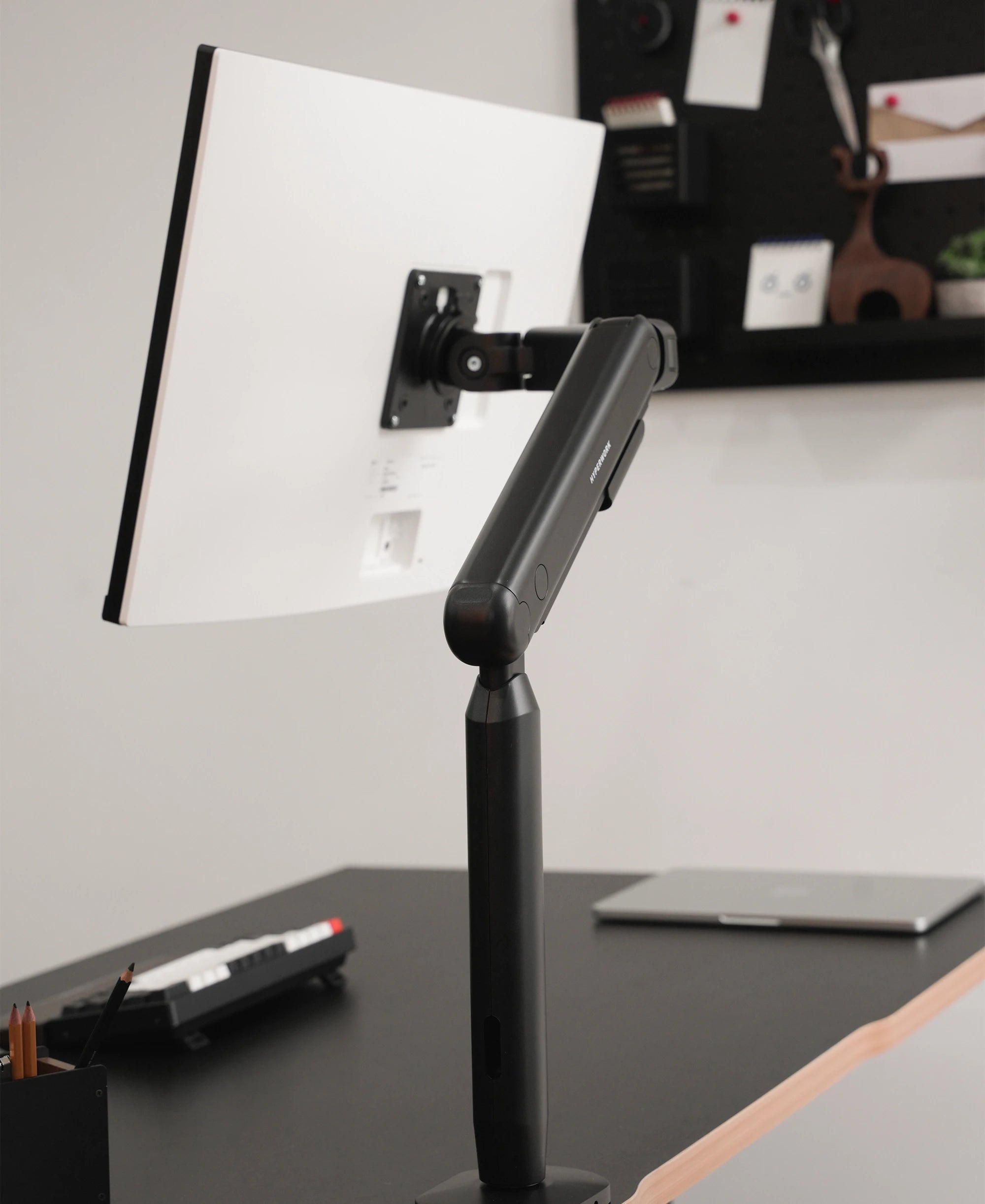Mẫu arm cột đơn này phù hợp với người dùng có nhu cầu điều chỉnh màn thường xuyên và đa dạng (đặc biệt là nâng màn lên cao), hỗ trợ cho các công việc media, nghệ thuật, tài chính, giảng dạy...