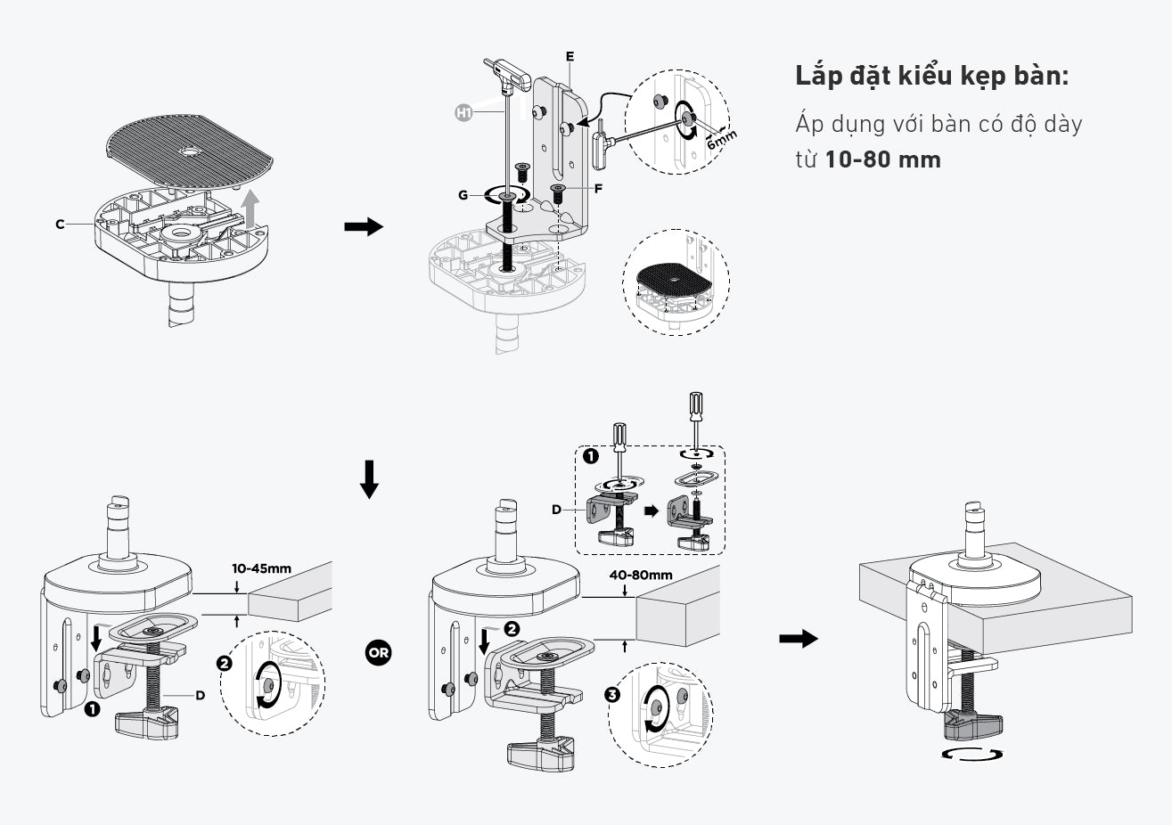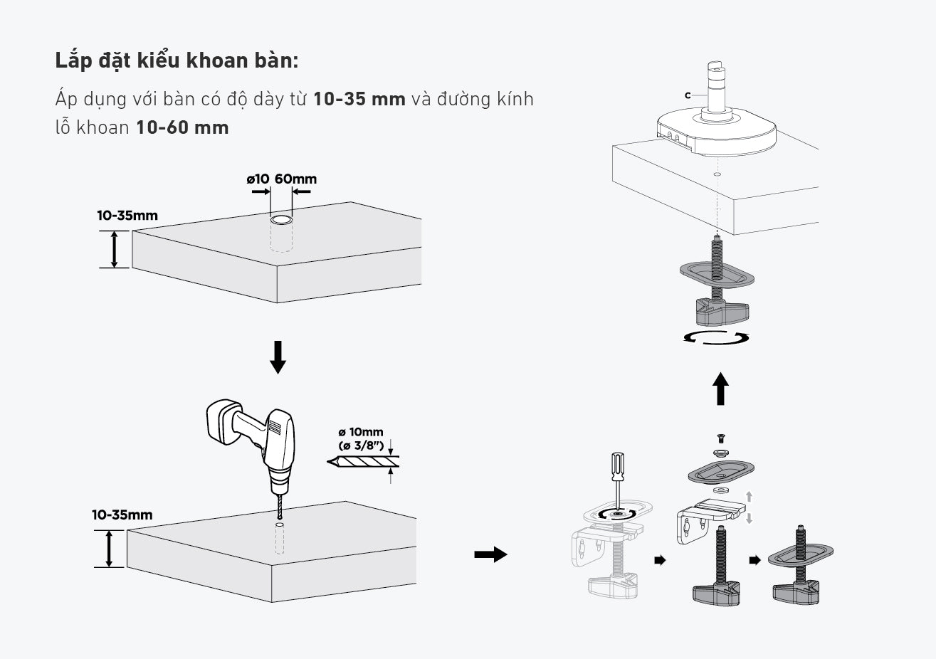 - Lắp đặt kẹp bàn hoặc khoan bàn