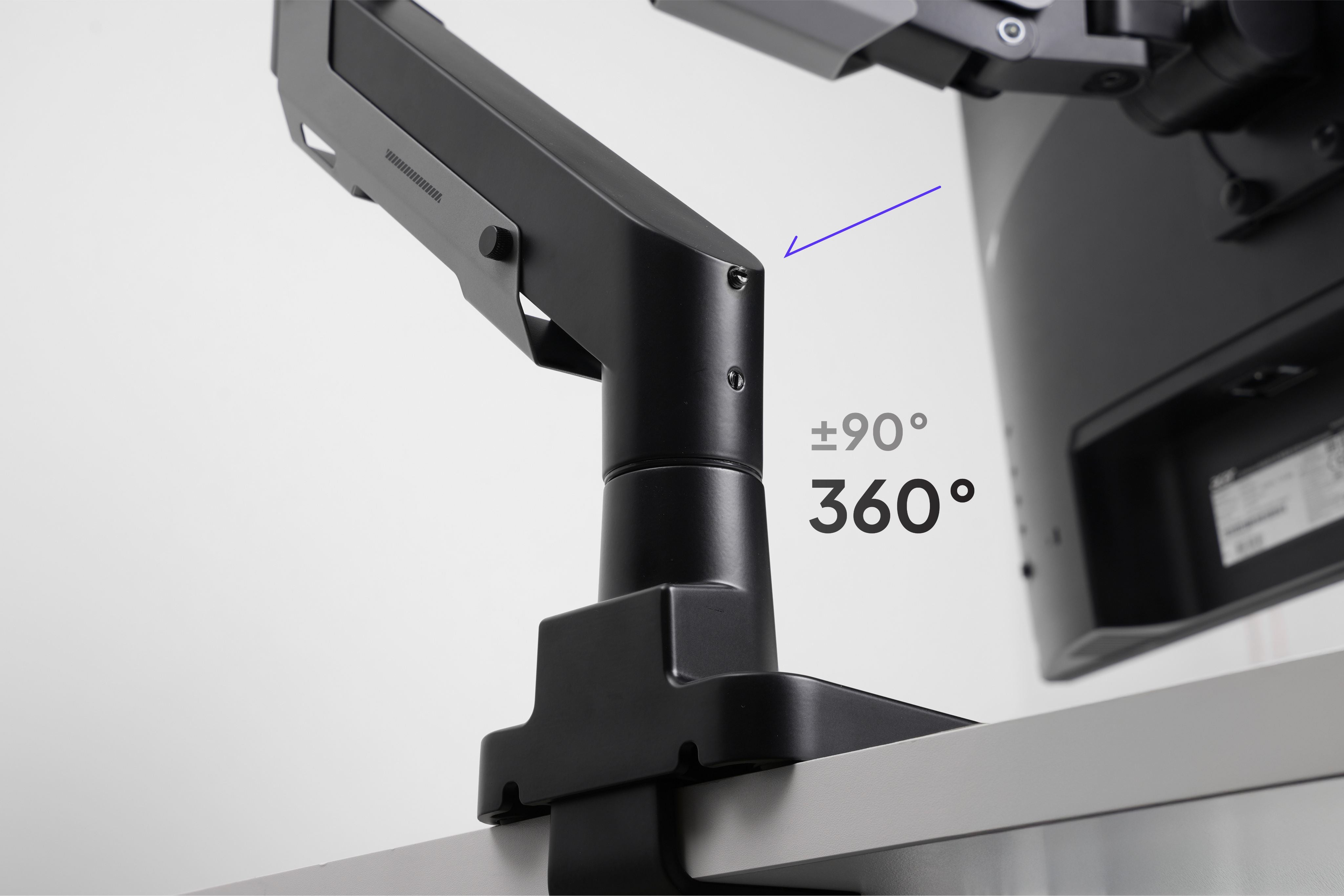 Điều này bảo vệ màn hình khỏi những va chạm vào tường hay vật dụng phía sau khi đặt arm ở khoảng cách gần. Ngược lại, arm cũng có thể đạt tới sự linh hoạt tối đa khi "unlock" khóa xoay này.