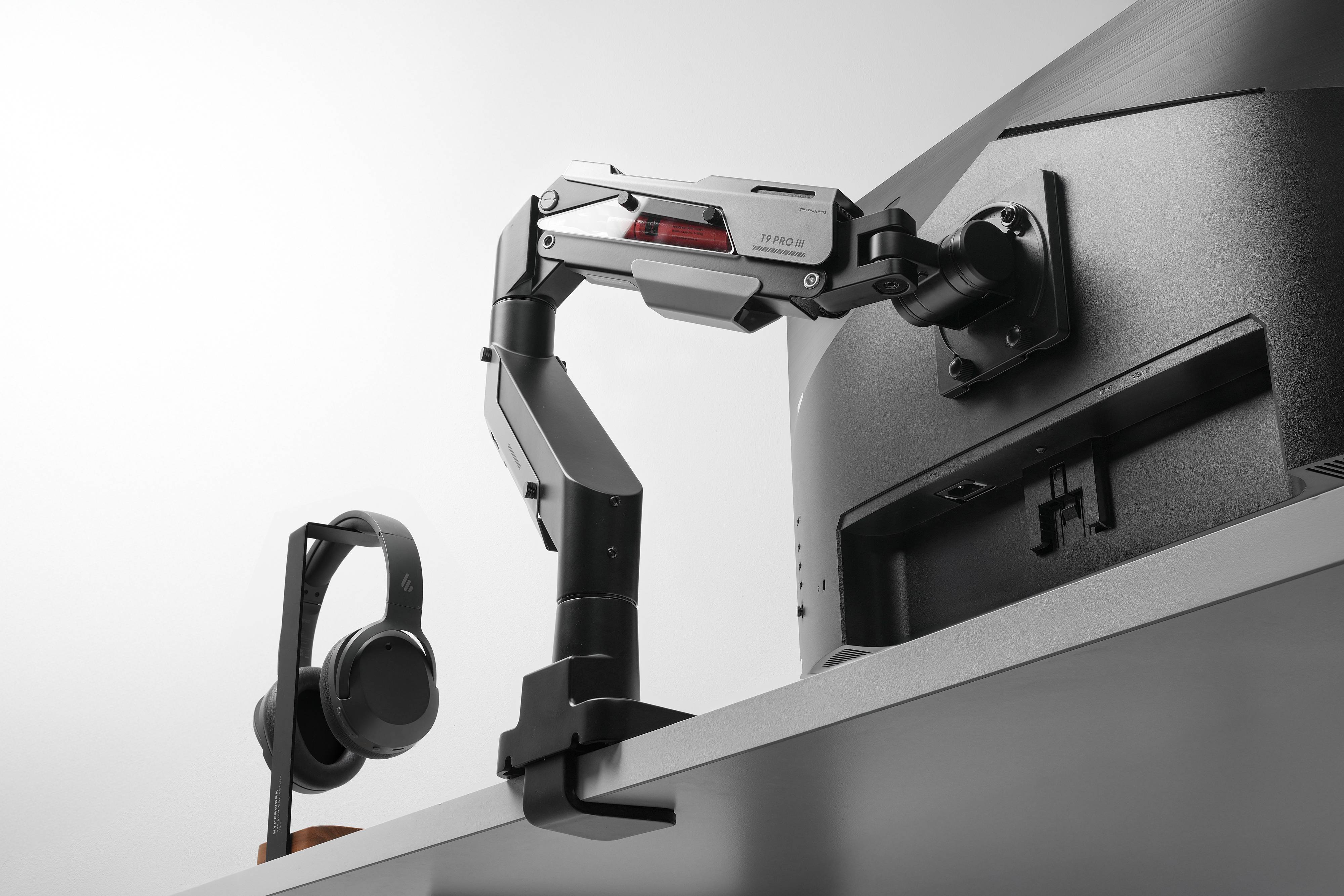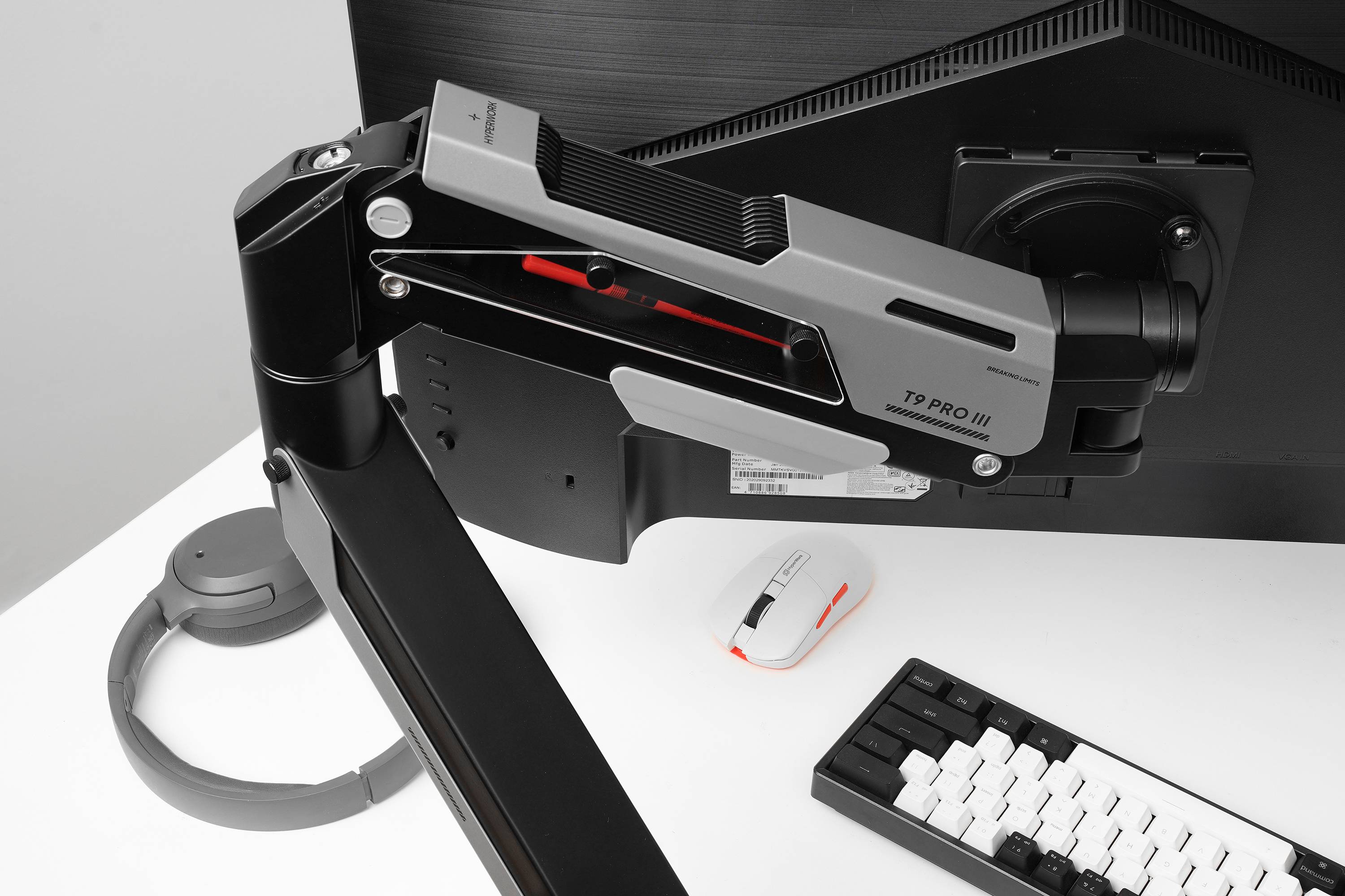Xoay, lật màn hình lớn thường khiến arm dễ “gục”, cơ chế Fluid Arc với vòng bi mượt và vỏ hợp kim gia cố của T9 Pro III giải quyết triệt để vấn đề.