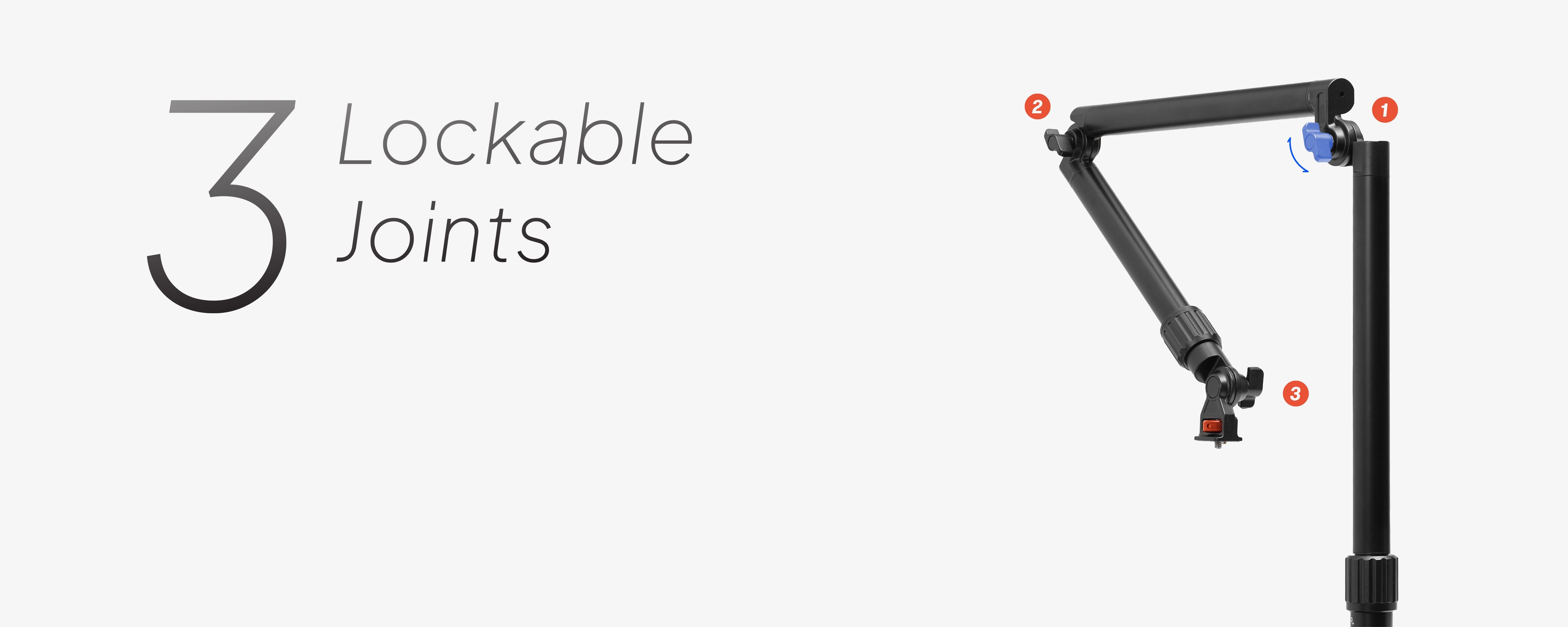 2 khớp đầu - cuối quyết định khả năng xoay trái, phải linh hoạt của arm. Được thiết kế xoay 360 độ, MA01 G3 thậm chí có thể xoay đa chiều, đồng thời tạo ra sự tùy biến lớn khi vươn xa hoặc thu gần ở bất cứ hướng nào. Từ đó có thể định vị chính xác vị trí mic theo hướng người dùng mong muốn.