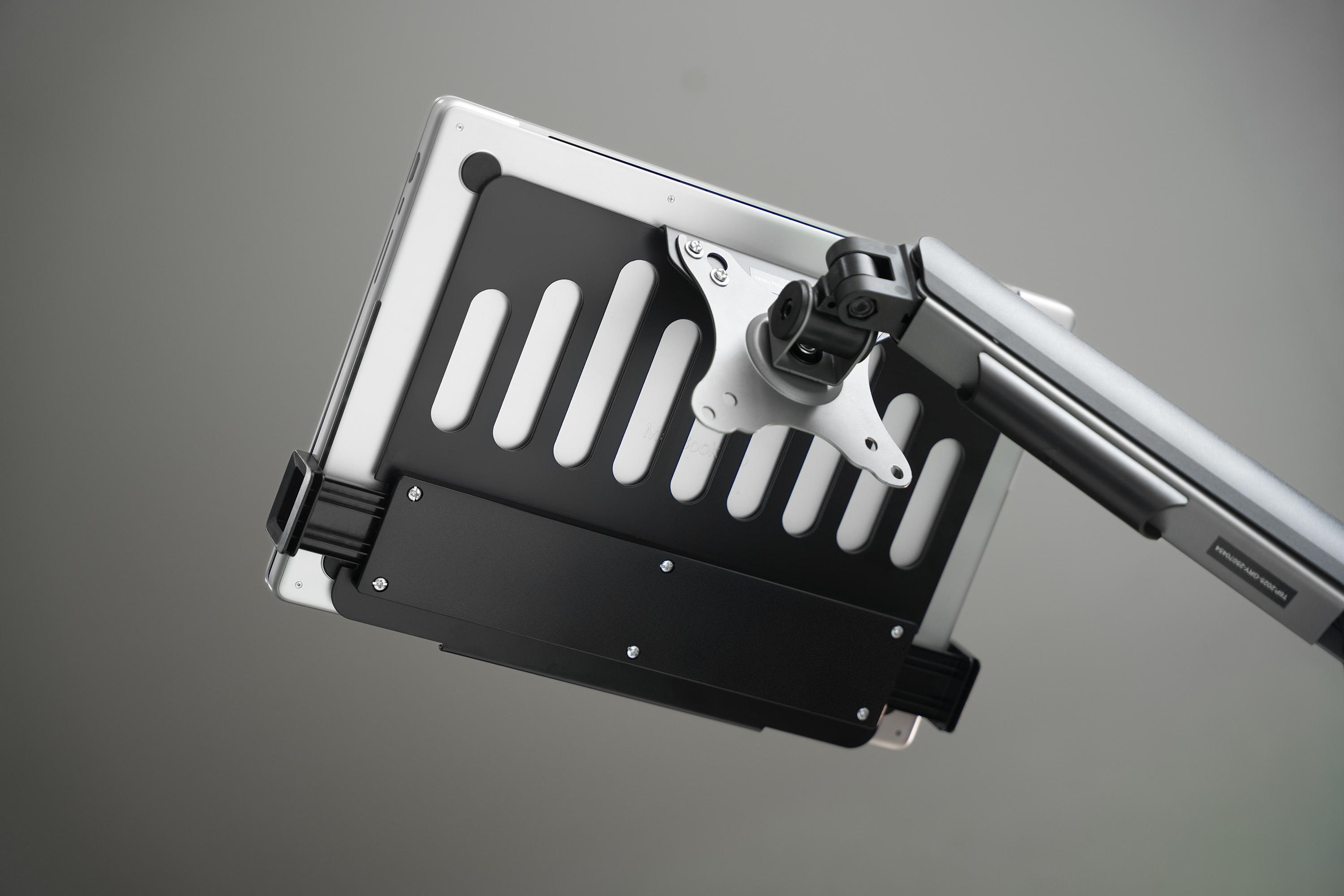LT03 có thể kết hợp cùng các loại giá đỡ màn hình đơn, đôi, cột hỗ trợ chuẩn VESA 75x75 mm; 100x100 mm nâng laptop lên cao, dễ dàng theo dõi công việc, đảm bảo hiệu suất.