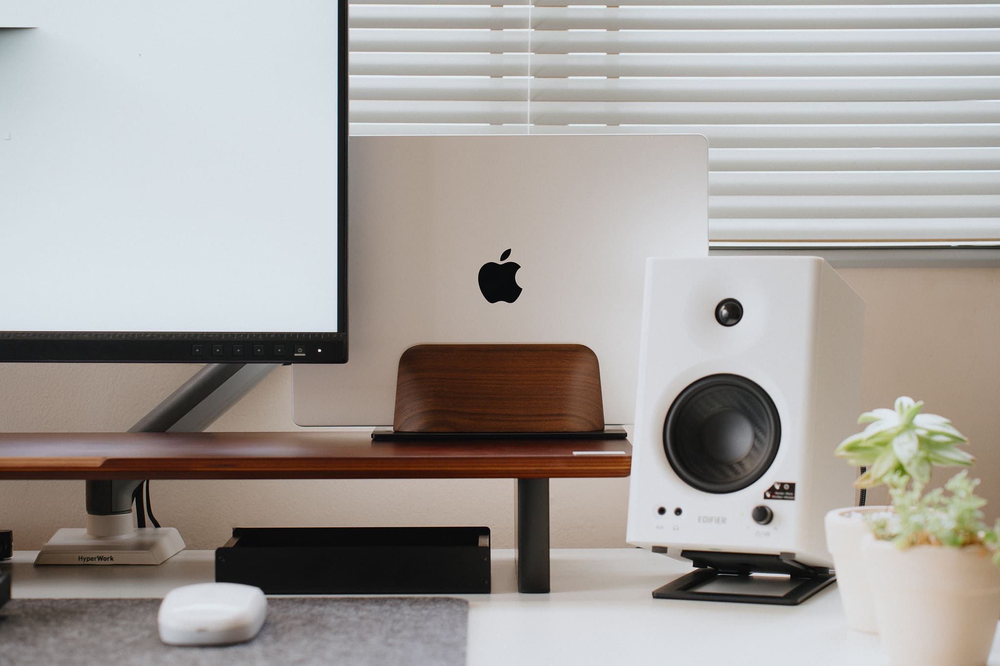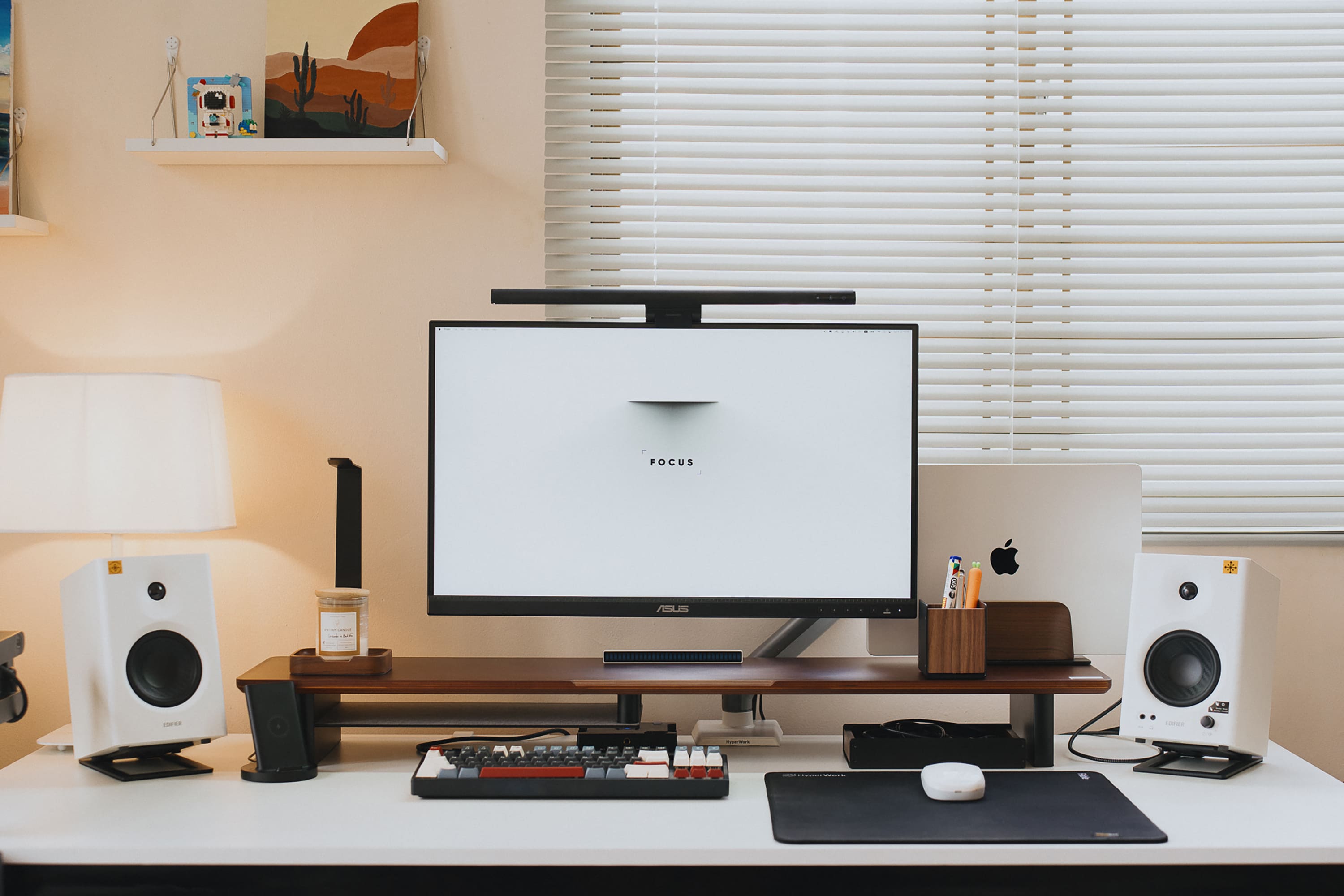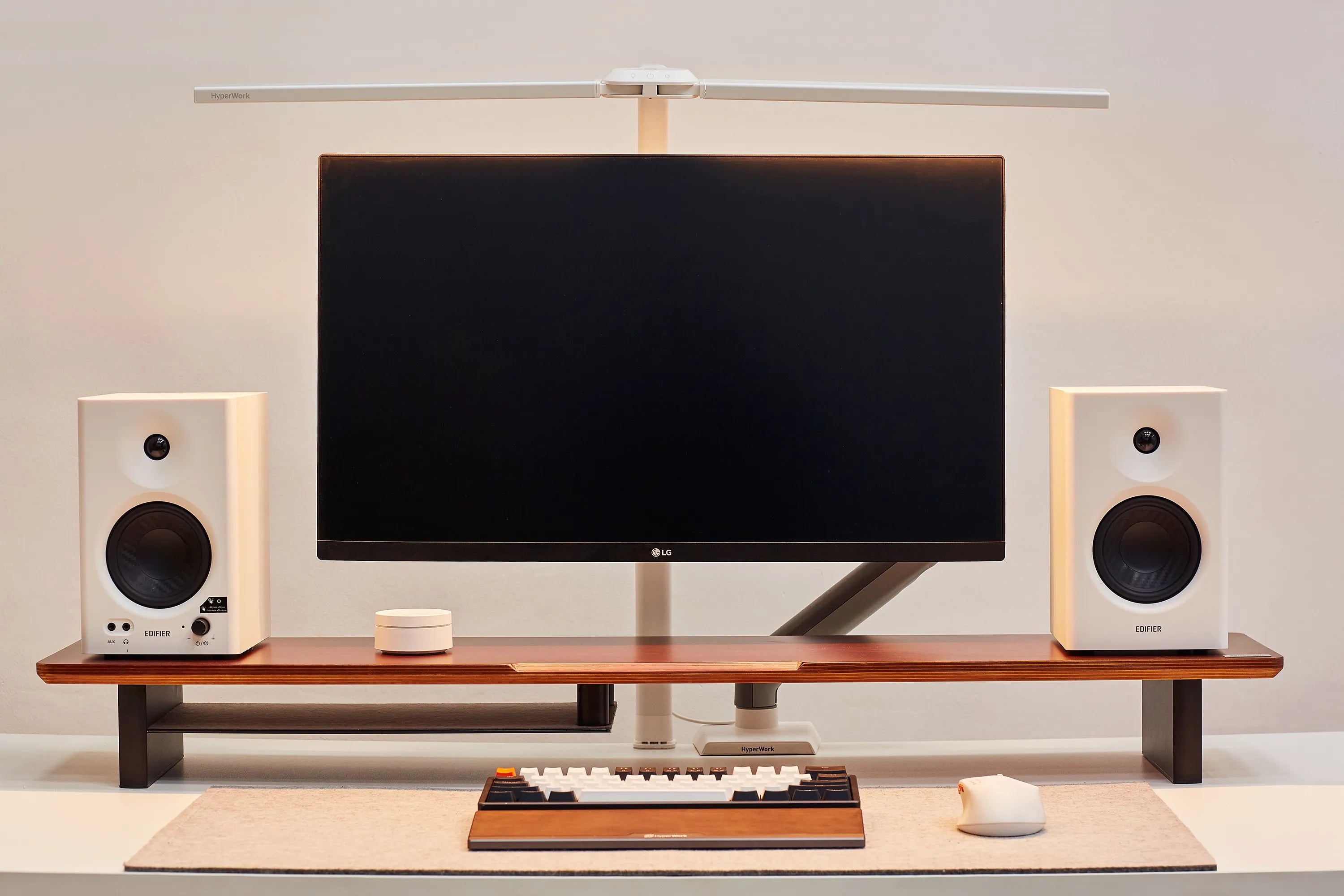 Với tone màu nâu gỗ và đen nhám từ gỗ bạch dương, gỗ óc chó kết hợp nhôm cắt CNC, kệ màn hình khi kết hợp cùng trọn bộ Premium Collection đóng vai trò trung tâm của setup, tạo sự cân bằng thị giác và liên kết các vật dụng trên bàn làm việc thành một tổng thể sang trọng, tinh tế.