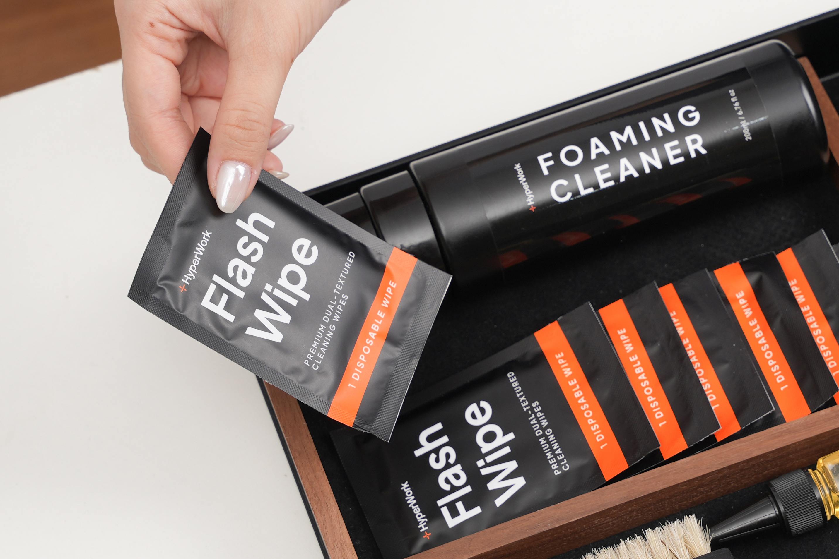 - Sau khi đã làm sạch với khăn Flash Wipe, giữ vật dụng trong điều kiện thường, tránh ánh nắng mạnh để hạn chế ố vàng