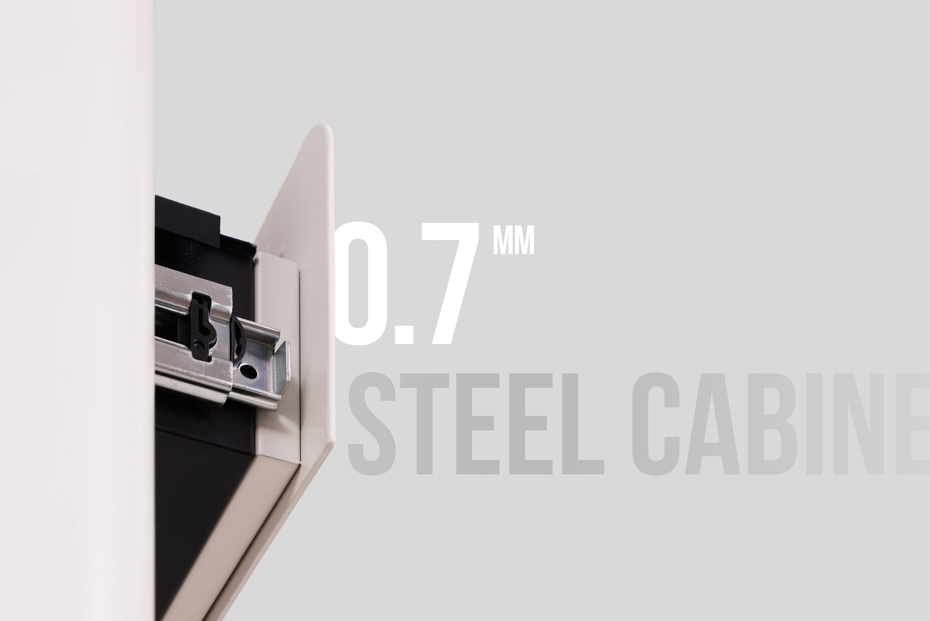Ivy Pro mở hoặc khóa đồng thời cả 3 ngăn, tăng tính bảo mật, quản lý tài liệu, đồ dùng tập trung hơn với chỉ 1 thao tác khóa nhanh chóng, tiện lợi. Việc hạn chế linh kiện cũng giúp gia tăng độ bền cho tủ.